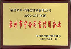 喜訊!鴻佳機(jī)械同時榮獲泉州市、南安市2020-2021年度“守合同重信用企業(yè)”榮譽稱號